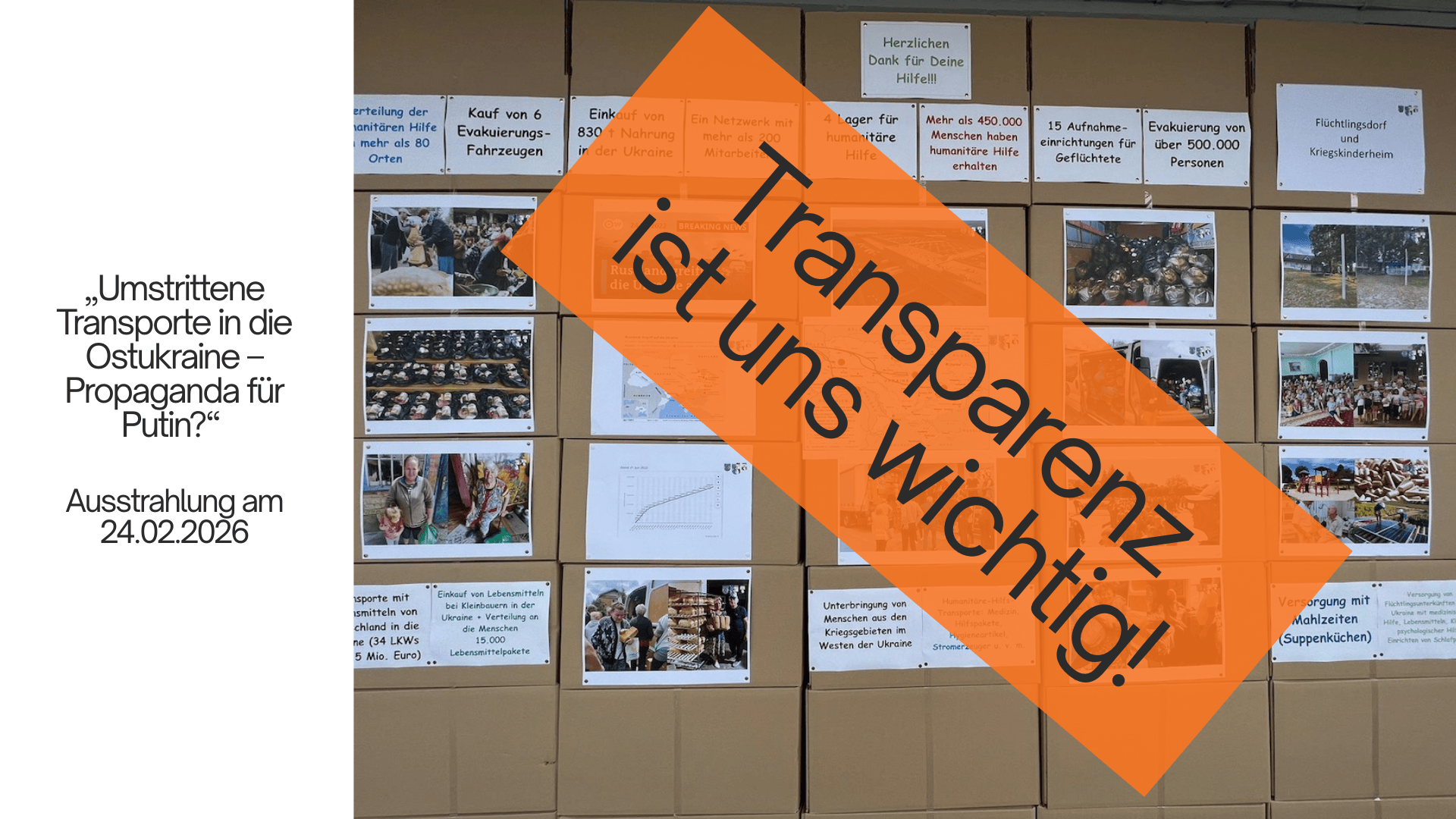 Sehr geehrte Report-Mainz-Redaktion, am 24.02.2026, genau vier Jahre nach Beginn des völkerrechtswidrigen Angriffskrieges Russlands gegen die Ukraine, lief in Ihrem Programm im Ersten Deutschen Fernsehen der ARD die Reportage mit dem Titel „Umstrittene Transporte in die Ostukraine – Propaganda für Putin?“. Vorausgegangen waren längerfristige Dreharbeiten an der Sammelstelle der Gesellschaft ...